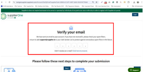 4. You will be sent an email to verify your email with a verification code. Use the code to continue the registration process.