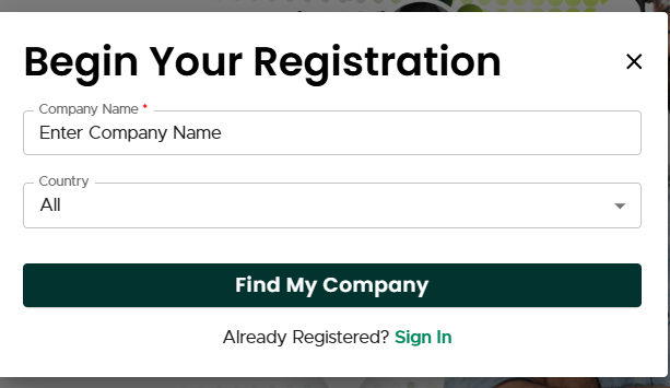 Once found, you can add your information to the company record that exists. If not found, you can create a new company registration.