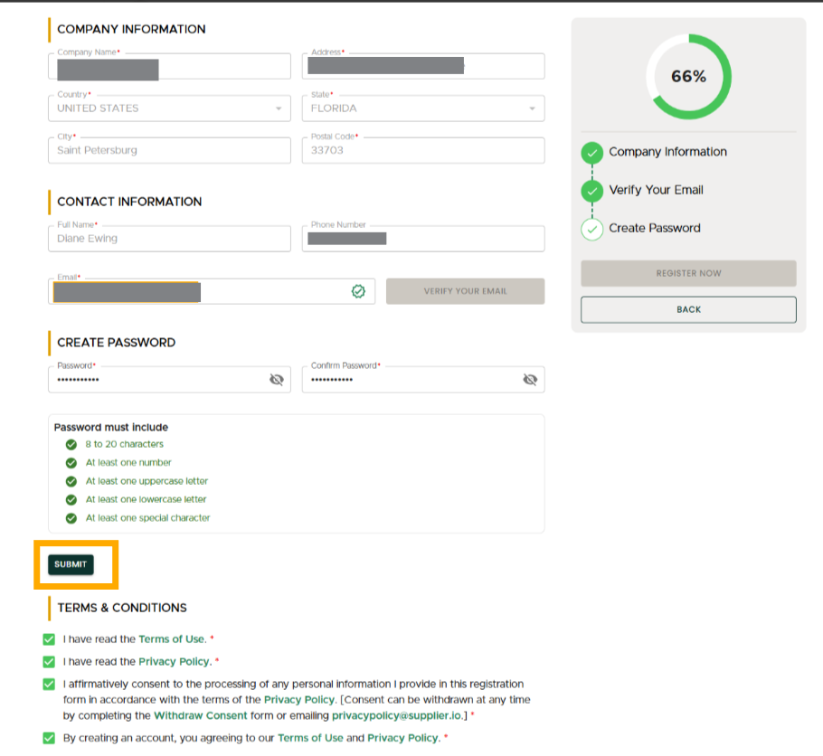 Creating your profile is simple. The SupplierOne registration site can be found at supplierone.co. By submitting your information, you will be entered into our supplier database. If one of our customers has an opportunity related to your submission, they will contact your organization for further information.