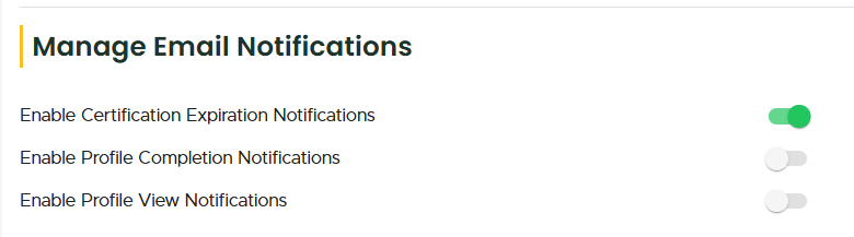 - Use the toggle switches to turn on or off the types of emails you wish to receive.