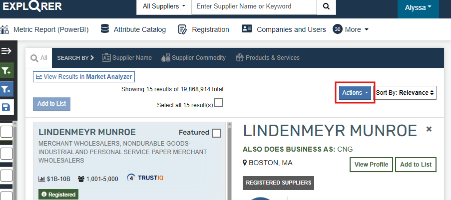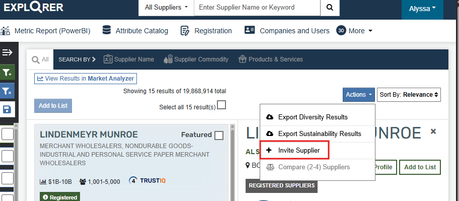 9. Once you are ready to invite the list you have created, you can select the "invite Supplier" option at the bottom of the pop-up window. Each supplier will receive an email invitation to register on the Explorer platform.
