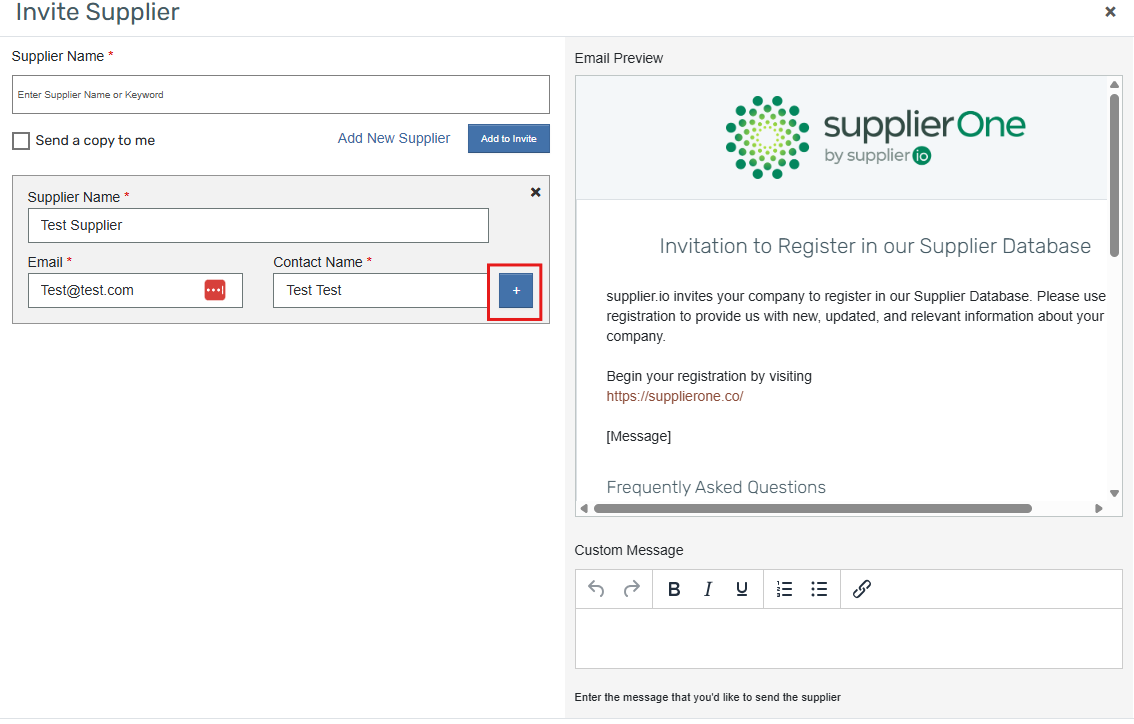 - Enter the following information for each supplier you want to invite: - Supplier Name